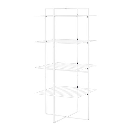 Jeg kan anbefale tørkekuben Antonius fra IKEA, den er meget plassbesparende og har samlet mange mange meter med tørking. Det er plass til mer enn to vaskemaskiner på den.