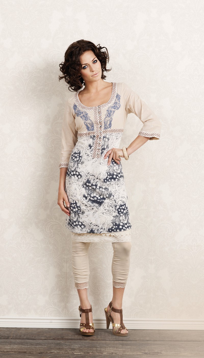 Jeg kjøpte 38, men burde hatt 40. For stoffet er ikke stretch, og det spriket litt over puppene, samt strammet over armene.. :sukk: