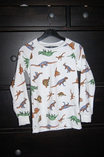 Jeg kom over disse stoffene på Printknitsstudio og kunne ikke la sjansen gå fra meg. Even er jo både dinosaur-gal og Biler-gal, så disse to var midt i blinken. Han fikk velge hvilken jeg skulle sy først, men det har vært så forskjellig svar fra dag til dag så jeg sydde liksågreit begge to med en gang. Helten selv var sovnet da genserne var ferdig, så actionbilene får komme senere.