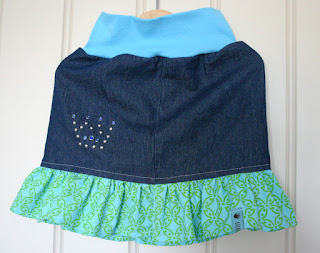 Her er gårsdagens, to skjørt som skal være presang i dag. Litt struttende nede på grunn av kantebåndene, men regner med det blir bra etter en vask.