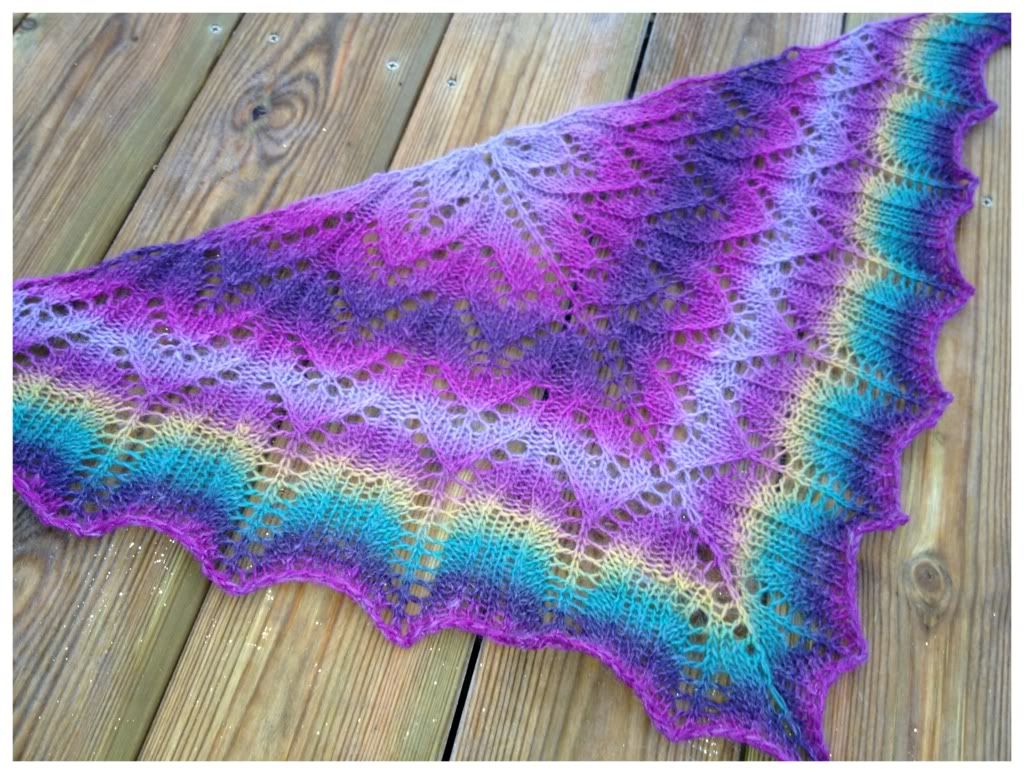 Peacock Shawlette, litt mer lilla enn på bildet: