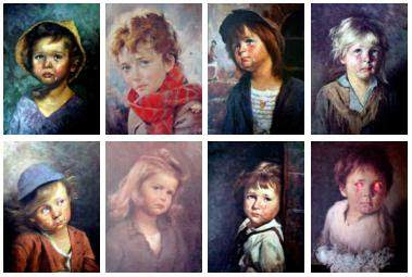 Og så var det porselensklovnene, da. Jeg hadde nærmere 60 av dem også, samtlige i lyseblått og/eller rosa. :gal: I tillegg til dokkene hadde jeg diverse plakater og gipsbilder på veggen, sengetøy (i flanell) etc., etc.
