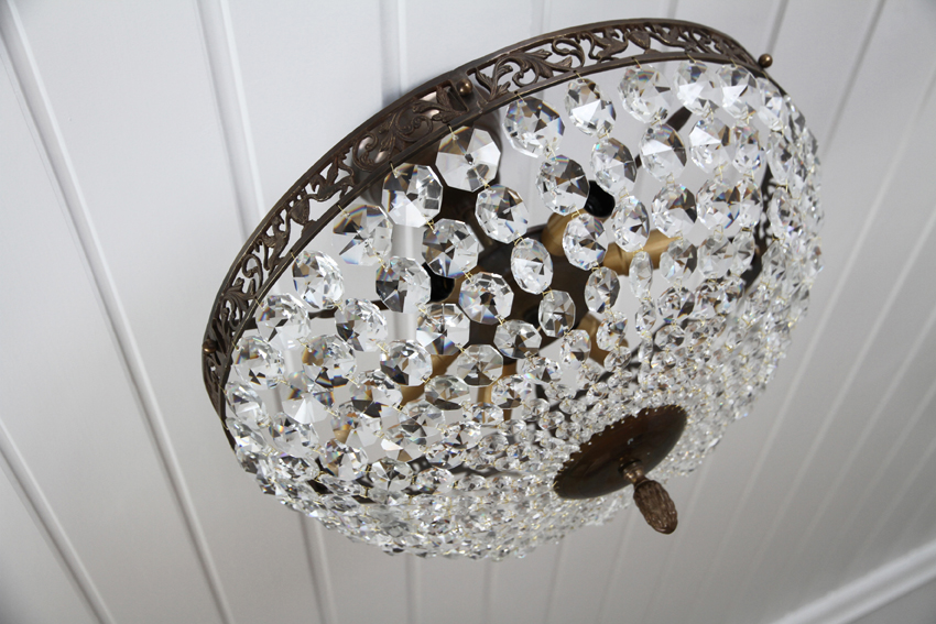 Jeg er litt kresen, men noe ala den nederste der er det jeg vil ha, altså mer "nedoverkroner" (og prismekrone?) og ikke sånne prangende stearinlysgreier i ring øverst. Den øverste blir for enkel, må ha noe mer overdådig uten at det blir too much. Men alt over 1000,- er for mye for mannen, han mener det er galskap. Det trenger ikke å være ekte, bare det er fint. Jeg kunne også tenke meg en over stuebordet, men der må vi ha en lampe høyest mulig mot taket så vi ikke slår oss på den når vi reiser oss opp, så der så jeg for meg noe ala dette.