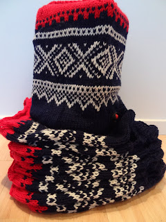 Det er fra mønsterark 106 hos pt design. Jeg trengte noe som ser komplisert ut, men som var lett å strikke. Med denne fikk jeg begge to :knegg: