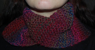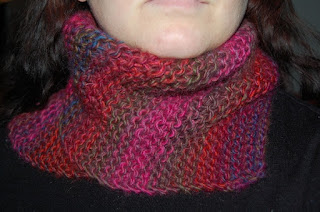 Jeg har strikket en enkel buff til å ha under ridehjelmen. (Ikke se på bildet, det er vanskelig å ta skikkelige bilder av seg selv. :knegg: )