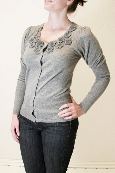Med helt enkel cardigan over. Nå var ikke denne like innsvingt som den jeg liker, men omtrent noe sånt:
