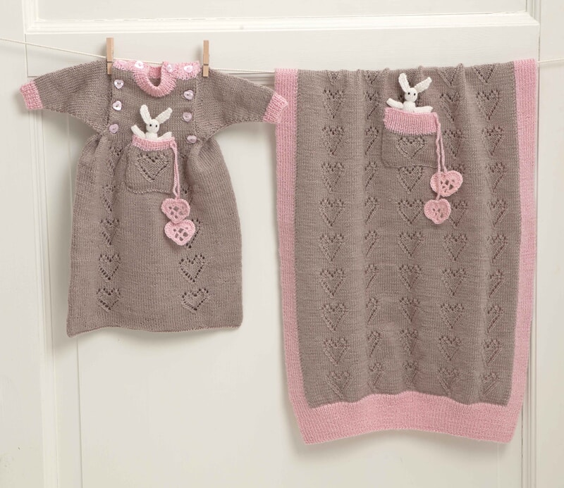 Isblå julekjole til vesla, rosa Bløde blade-vest til vesla, Mor Signe-teppe til en baby som blir født i høst.