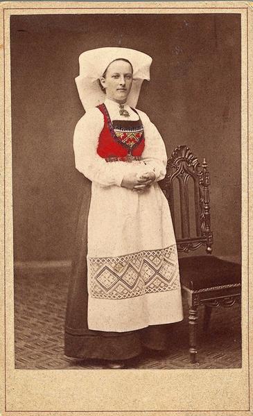 Jeg lurer på om grunnen til at man ikke konstruerte noe koneskaut til min bunad er at det de fant av tradisjonelt brukte hodeplagg ikke var så staselige?
