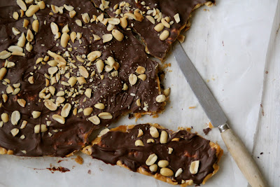 :humre: Smeltet, mørk sjokolade, en fløteskvett, salte peanøtter, bland. :værsågod: