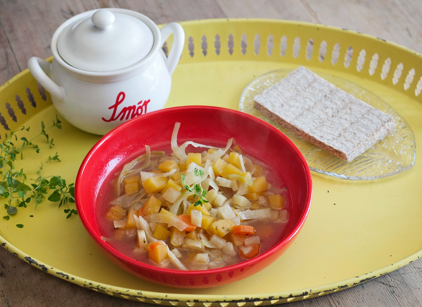 Kokte kraft på kyllingen i går så i dag hadde vi grønnsaksuppe :D