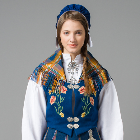 Jeg har blå Nordlandsbunad. Det hører visstnok en lue til denne bunaden, men den har jeg aldri sett noen gå med, og jeg har i alle fall ikke en slik en selv.