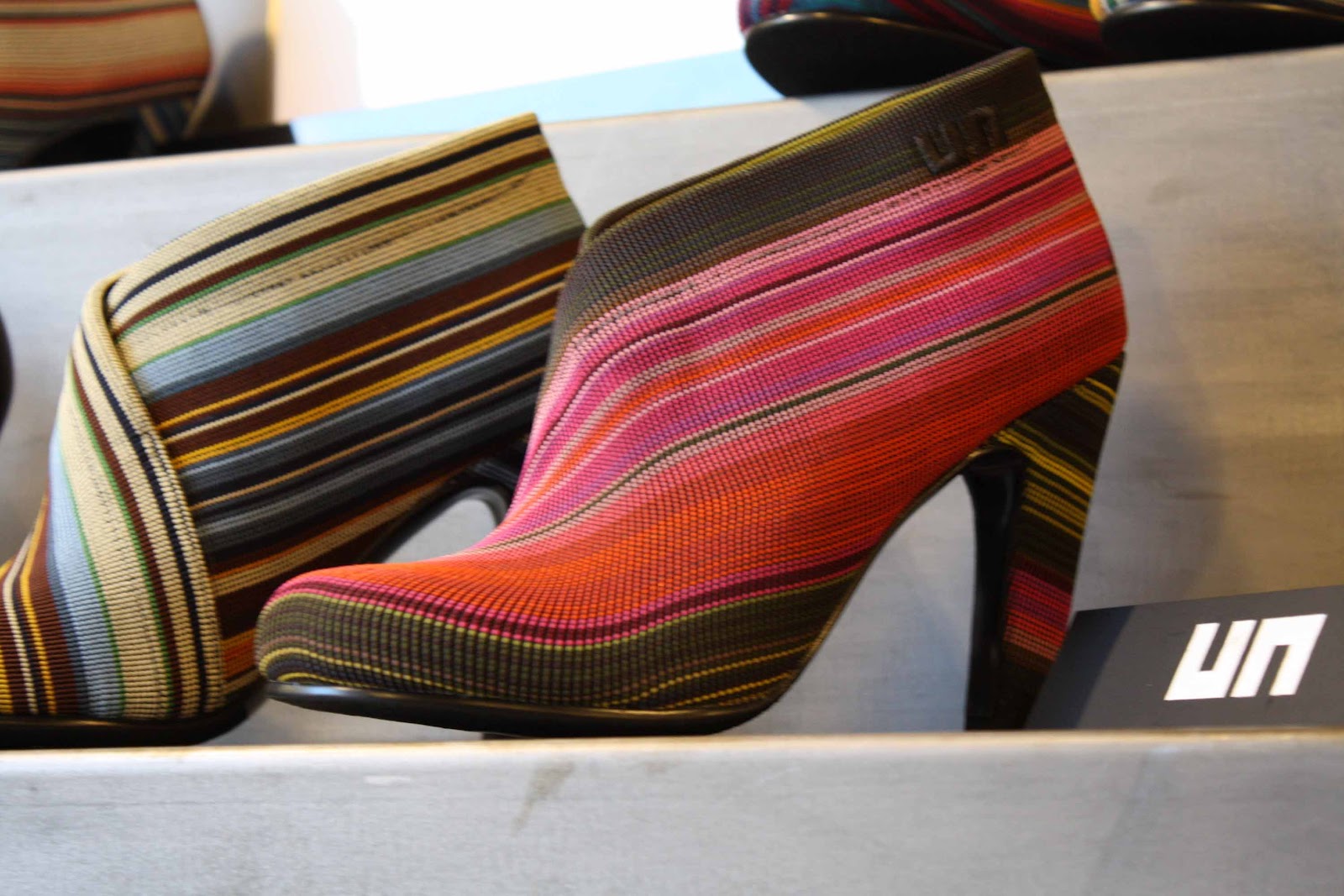 Jeg leter etter et par sko som minner om disse, i stoffkvalitet og type striper, men som enten ser ut som litt mer klassiske pumps i fasong eller litt mer klassisk kilehælfasong. Forståelig? :knegg:
