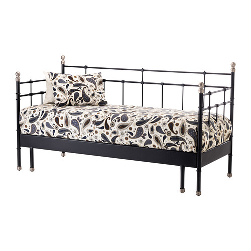 Er såååå gira på å få meg en sånn dagseng som på bildet over her. Kan dytte madrass og puter under sengen min som er i rommet ved siden av balkongen, når det ikke er i bruk. Spørsmålet er vel mer om den vil ruste og om bunnen vil holde seg. Må kanskje ha et trekk eller noe?