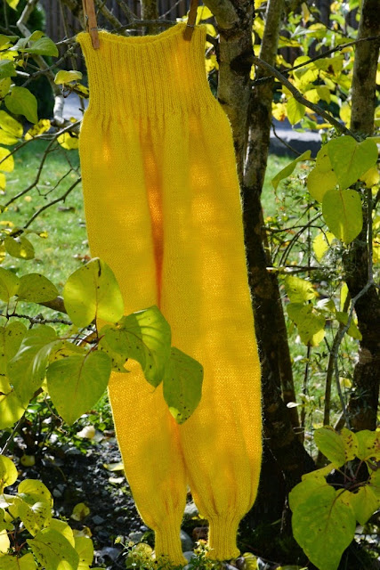 Går raskt å strikke, men vrangborden i midja fungerer ikke helt. Der ville jeg strikket kortere og brukt strikk.