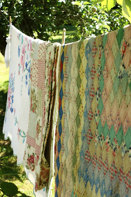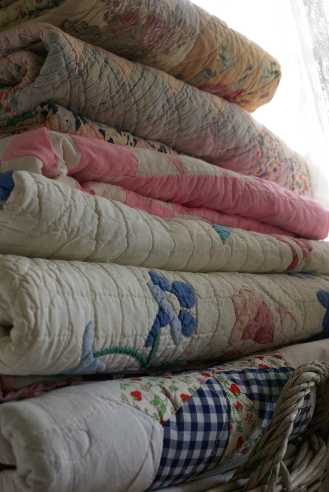 Jeg har et helt sommerhus som er møblert med brukt- og loppefunn. Det jeg liker aller best, er bunken med brukte quilts fra USA som jeg har kjøpt der borte, og på eBay.