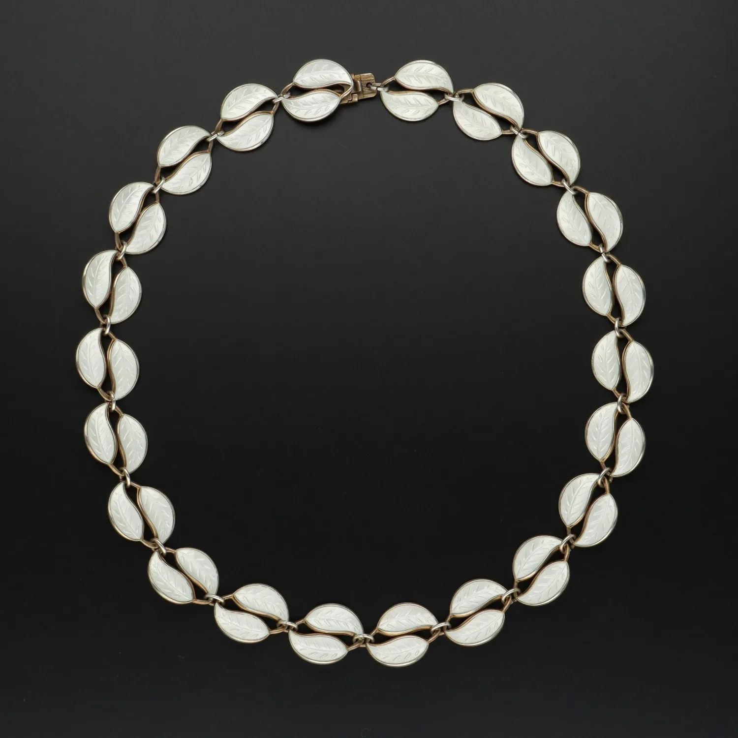 Det går i rotasjon med et smykke med hvite emaljeblader fra david andersen/willy winnæss -også arvet av mormor, sammen med perleøredobber Sphere fra Georg Jensen.
