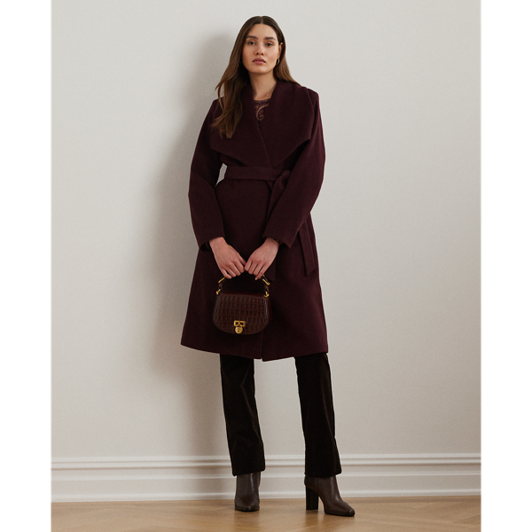 Jeg er ute etter en ullkåpe i burgunder/vinrødt. Den skal ha belte og den må ikke ha knapper. Lengde er ikke så viktig.