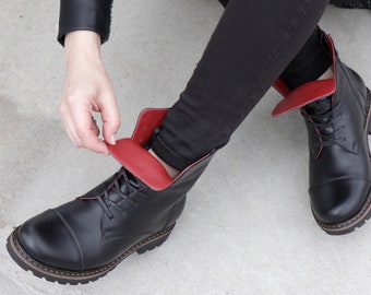 Jeg bruker vanlige Dr Martins skolett, og uten synlig søm mot såla. Når det bikker over mot vinter har jeg en modell med for og glidelås i sidene.
