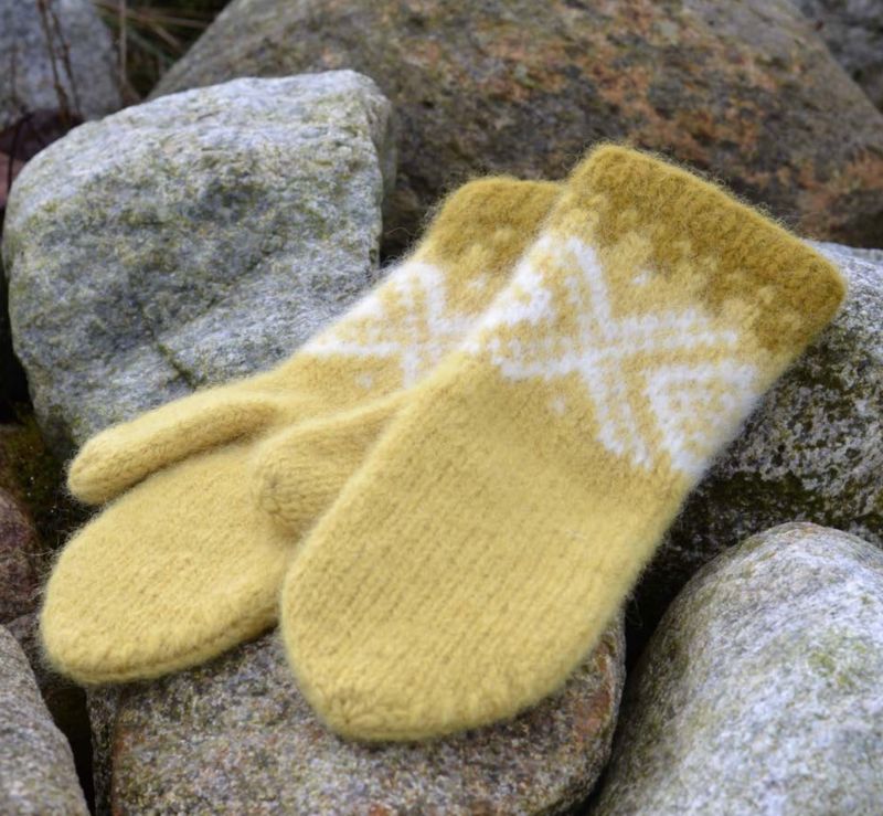 Disse vottene må riktignok toves. Det er kanskje litt skummelt, men er fort gjort. Lett dem i bløt i litt varmt vann. Klem ut så mye av vannet du klarer, og legg dem i tørketrommel. Sjekk innom hvert 5. minutt, og ta dem ut når de oppnår ønsket størrelse.