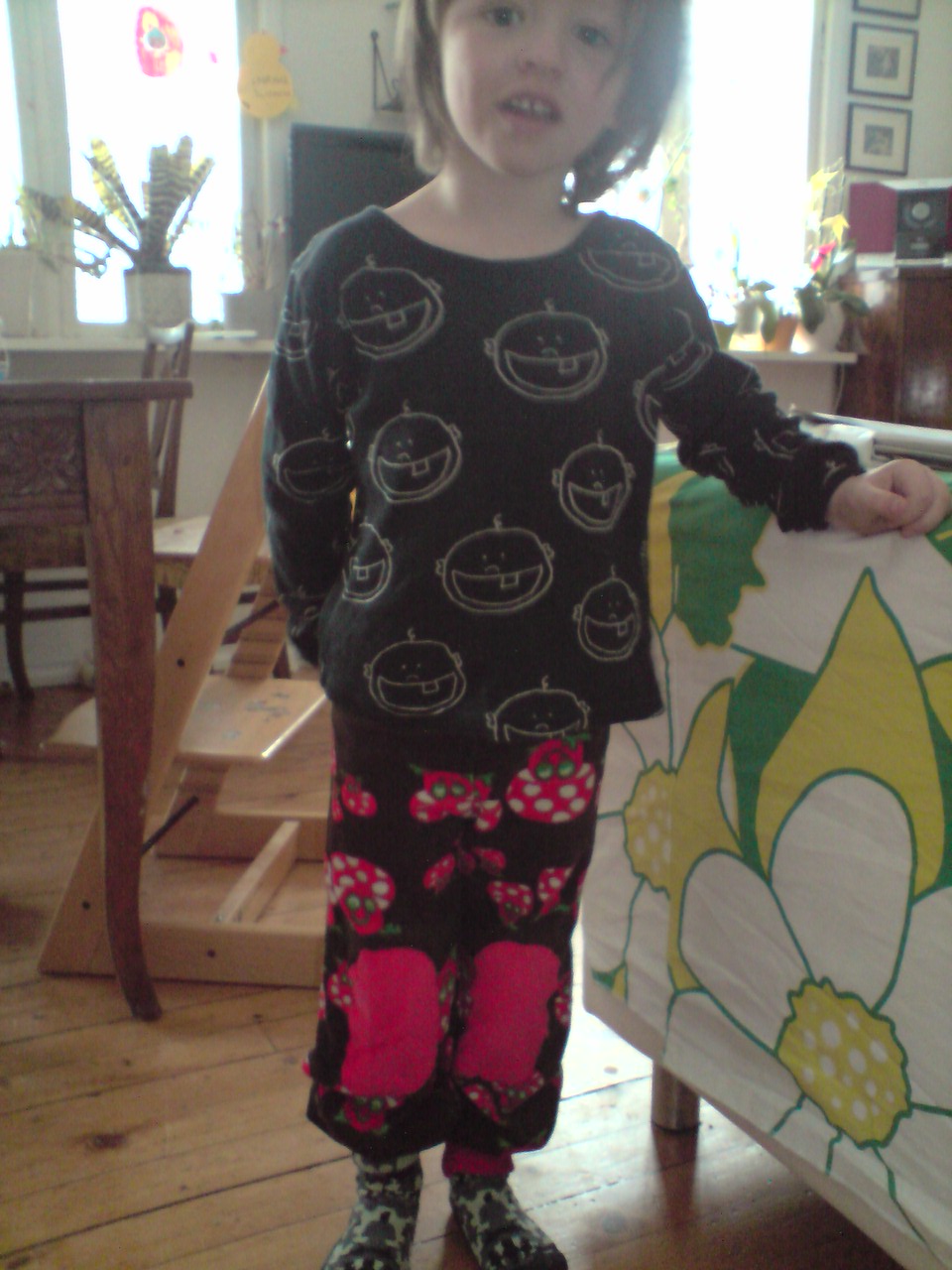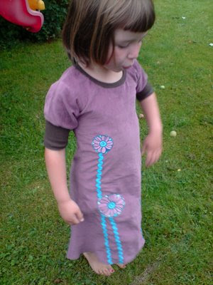 Veldig fornøyd med denne kjolen! Det ble Punktum også - da hun fikk den på, begynte hun med en gang å synge "Tornerose var et vakkert barn". Trolljenta valset rundt og kalte seg en prinsesse, og kikket blidt inn på kjøkkenet for å spørre om noen hadde sett et vakkert barn.