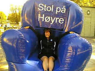 Vi har en sofastol med plass til to-tre personer.