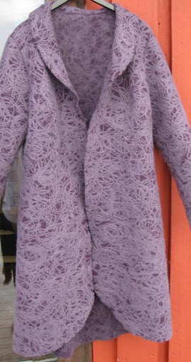 Den kåpen har jeg sydd også i to forskjellige stofftyper. En i grå tovet ull og en sommerlig i rosa.