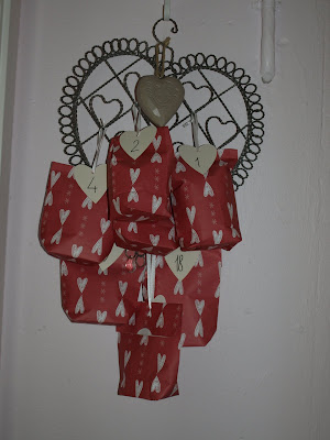 Jeg holder på å lage liste, og skaffe pakkeinnhold. Henger den nok opp dagen før. Da skal jeg ta bilde. :)
