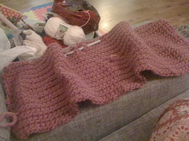 Jeg er halvveis på andre forstykke. Da er det bare ermene igjen, og jeg tror ikke jeg har nok garn. Hvilket er krise, for jeg har støvsugd butikken for det aktuelle partiet, og det var kjempestor fargeforskjell til det andre partiet de hadde. :sukk: