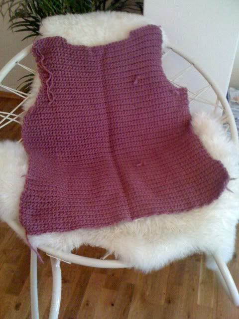 Dette er så gøy. Vi hadde gjester i går og jeg trente, men allikevel fikk jeg heklet et helt nøste. Nå er jeg straks klar for å felle til armene på bakstykket ..... og i dag skal jeg være hjemme alene med ungene, så da kommer jeg til å få gjort masse.