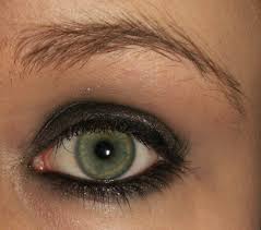 Jeg gjør en liknende greie, men ikke fullt så svart. Jeg bruker lys rosa skimmer på benet under øyenbrynet, så tinnfarget skimmer over hele øyenlokket og litt under øyet, så matt svart kajal, og matt svart oppå kajalen, littt i ytterste kant, og litt under øyet.
