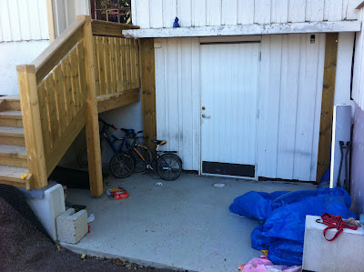 Det har blitt mye gravearbeid ute. Mye og dyrt. Tar bare med bilder av inngangspartiet, men det er gravd og drenert og støpt fundament for garasje og gode greier. Desverre ser det meste fremdeles ut som en byggeplass, men vi tenker å legge noe stein til sommeren (om vi har råd).