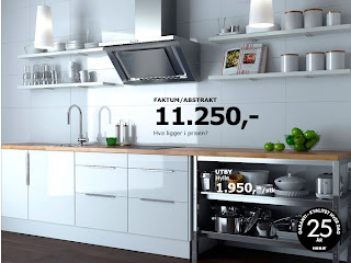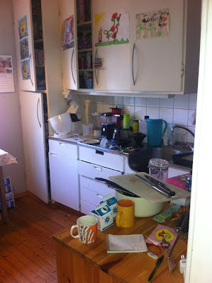 Og så - så håper jeg det blir igjen nok penger til å gjøre saker og ting inne. Først på prioriteringslista står nytt kjøkken. Det vi har er knøttlite, upraktisk og sammensatt av hummer og kanari - fra kul 50-talls kjøkkenskap via hjemmesnekret benkeplate til glasskap fra Ikea anno 1989.